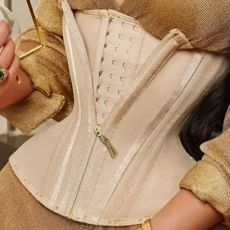 ADJUSTABLE FIT ¨C Hidden hook-and-eye fastenings under the zip allow you to customise the fit and offer adjustable compression for a slimmer figure and maximum waist reduction.