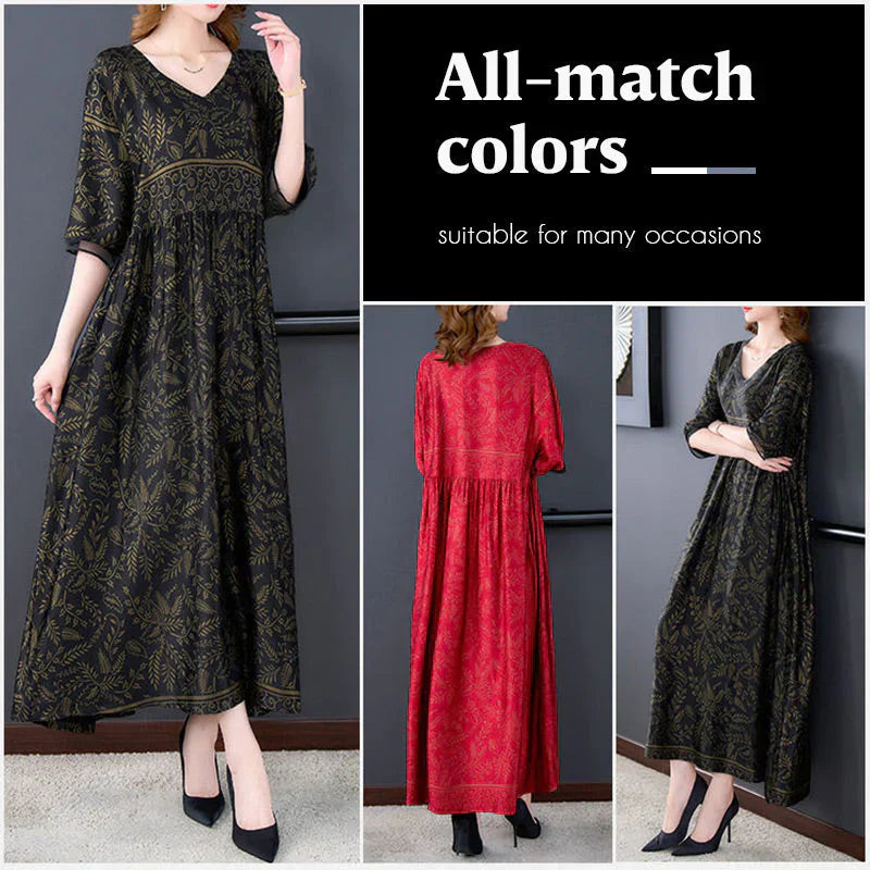 Half-sleeve fashionable loose retro elegant A-line long dress