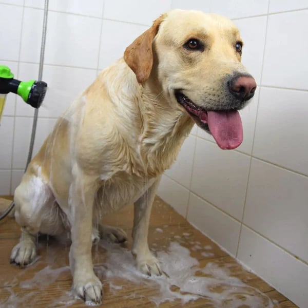The Dog Jet ensures that everyone's furry friend is not only clean but also healthy . With its 2x more pressure than an average hose, 8 specialized spray modes , and adjustable soap dilution, it is safe to be confident that the Dog Jet will remove any stubborn dirt hiding underneath the coat. Whether it's mud, poop, sweat, or dandruff, the Dog Jet is designed to eliminate it all, leaving the dog with a cleaner and healthier coat.