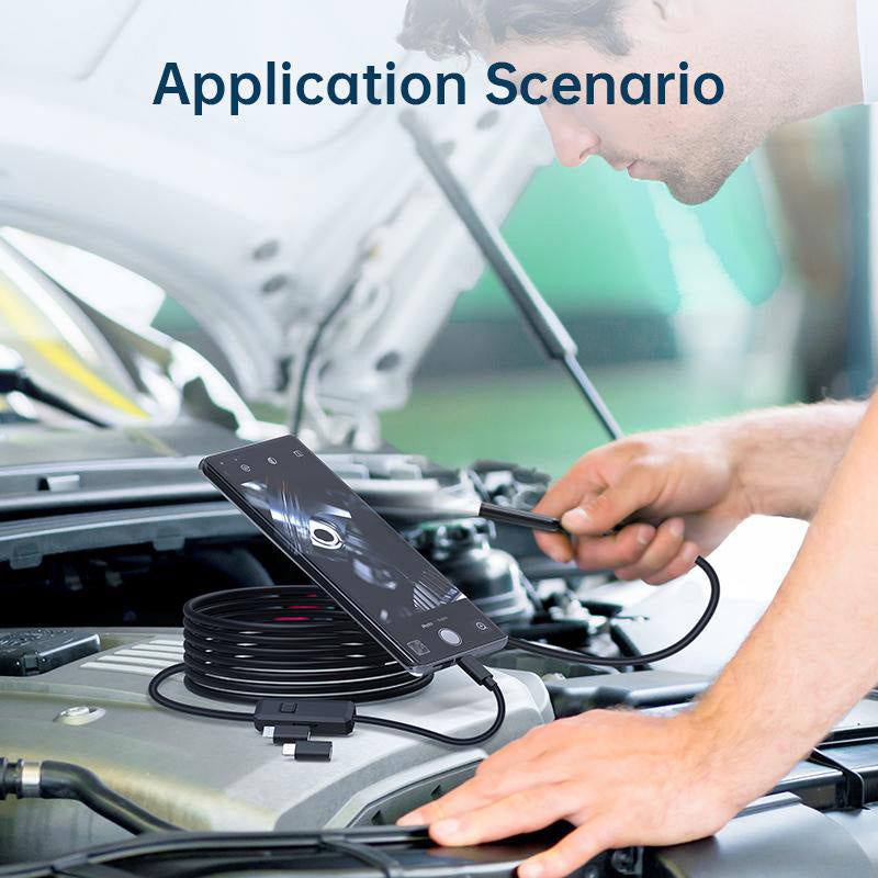 EASY CONNECTION- Borescope camera supports Apple or Android full system direct connection, comes with TYPE-C port, with (TYPE-C to Micro, TYPE-C to Lightning) adapter, compatible with 99% of mobile devices on the market, plug and play.